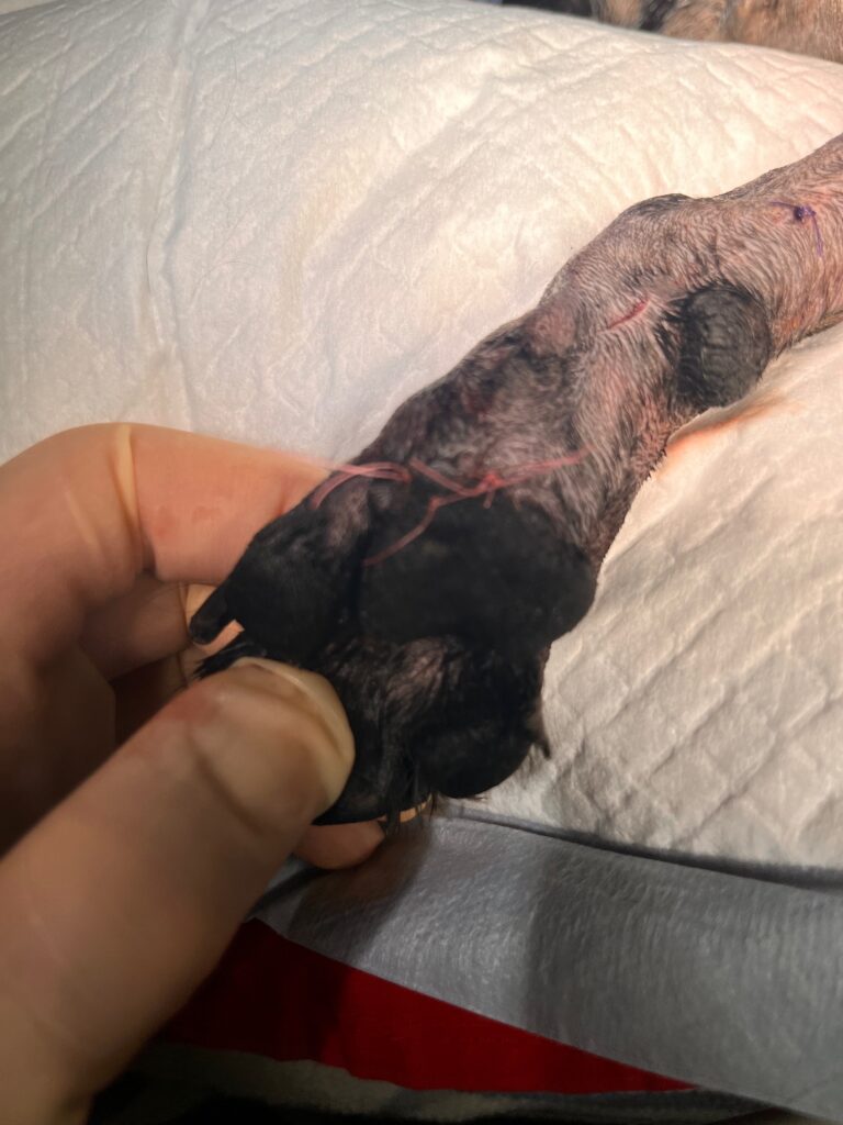This is a great example of a collaborative case between specialists. Malignant melanoma is a highly metastatic cancer, so even with removal, we were concerned about regrowth at the site (foot pad) and spread to lymph nodes and lungs over time. His lymph node was removed during a mass removal for definitive testing for spread. He underwent a melanoma vaccine to improve survival for metastasis over time. He underwent electrochemotherapy (chemotherapy given IV that is not systemically absorbed, but activated locally with electric pulses at the site of concern) twice to reduce the chance of recurrence on his foot pad. All of this was performed to avoid an amputation and improve his quality of life. So far, he is doing well with no signs of spread or recurrence!